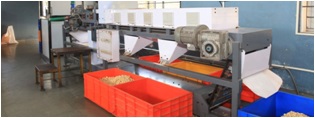 Peeling : The skin of each cashew is peeled by machines and the cashew is simultaneously visually Graded according to quality.